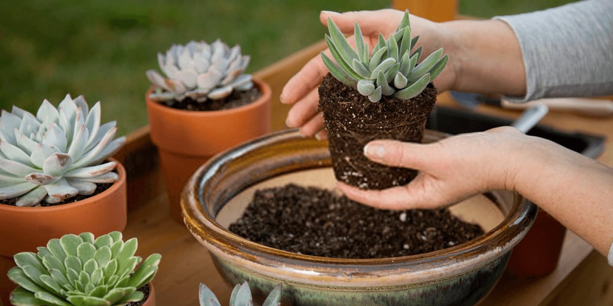 Now plant the succulents in new pots. Carefully place the plant in the center of the pot, making sure it is upright and centered. Fill any gaps around the plant with soil and gently press down to remove air pockets. watering and caring for plants