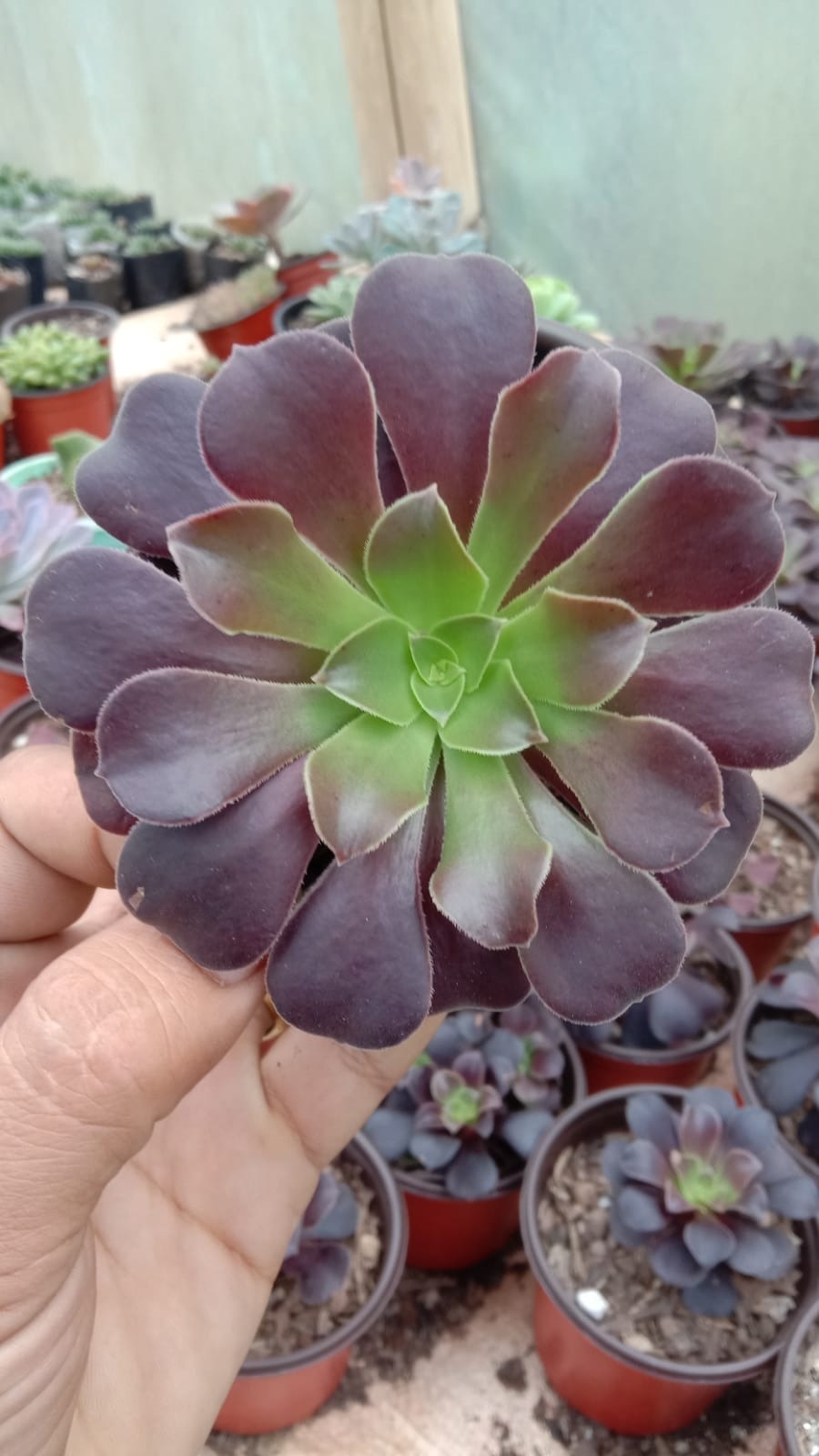 Aeoniums are natives of Madeira, the Canary Islands and North Africa. Aeonium ‘Zwartkop’ is a succulent that develops a shrubby habit with rosettes of leaves that, given a hot, full sun position, can turn almost black.