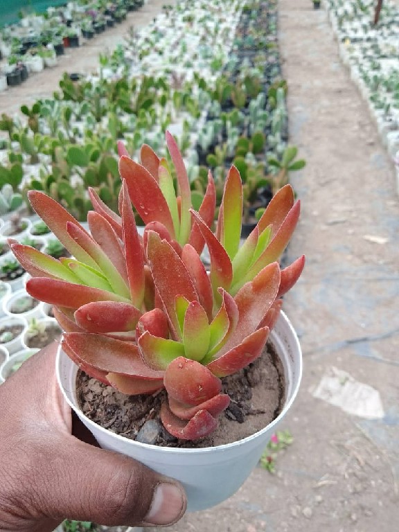Crasulla Campfire or Red Flames is a branching succulent plant with fleshy propeller-like leaves that mature from light green to bright red.. Leaves turn bright red if not over-watered and the plant receives direct sun for most of the day, during drought or in cold temperatures.