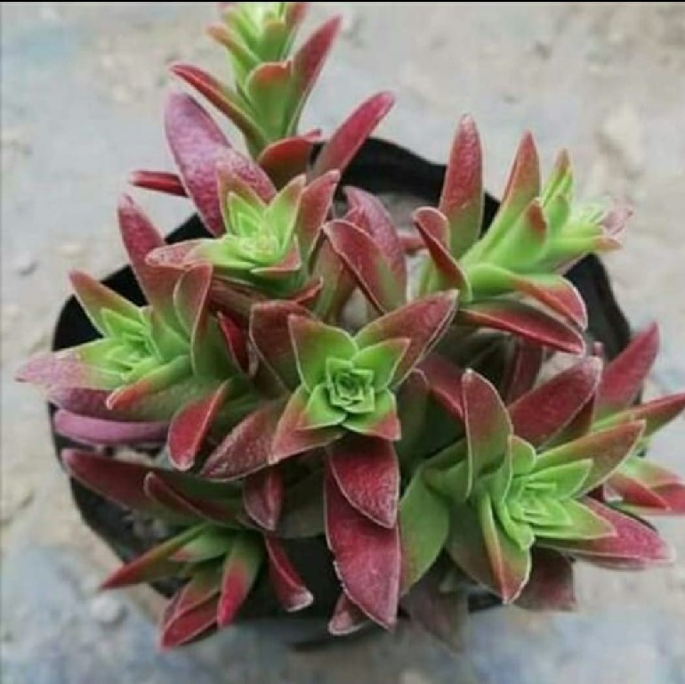 Crasulla Campfire or Red Flames is a branching succulent plant with fleshy propeller-like leaves that mature from light green to bright red.. Leaves turn bright red if not over-watered and the plant receives direct sun for most of the day, during drought or in cold temperatures.