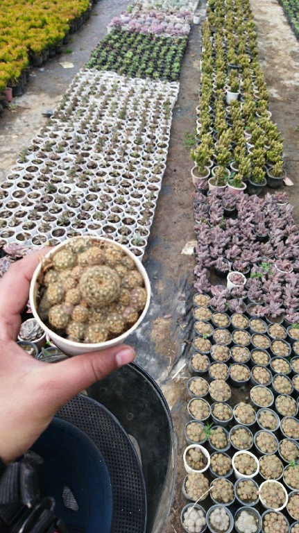 The cactus forms dense groups of cylindrical, erect or semi-prostrate stems about 6 to 15 cm long and 1.5 to 3.7 cm in diameter. Its body, bright green, is formed by short conical tubercles (2 to 4 mm) ending in round and woolly areoles in the young segments, unlike tubercular axils that lack wooliness.