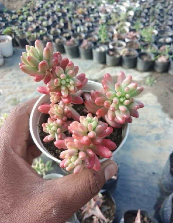 Sedum rubrotinctum is cultivated as an ornamental plant, for planting in gardens and as potted plants. It is grown very easily and tolerates all types of soil except for those that are poorly drained.